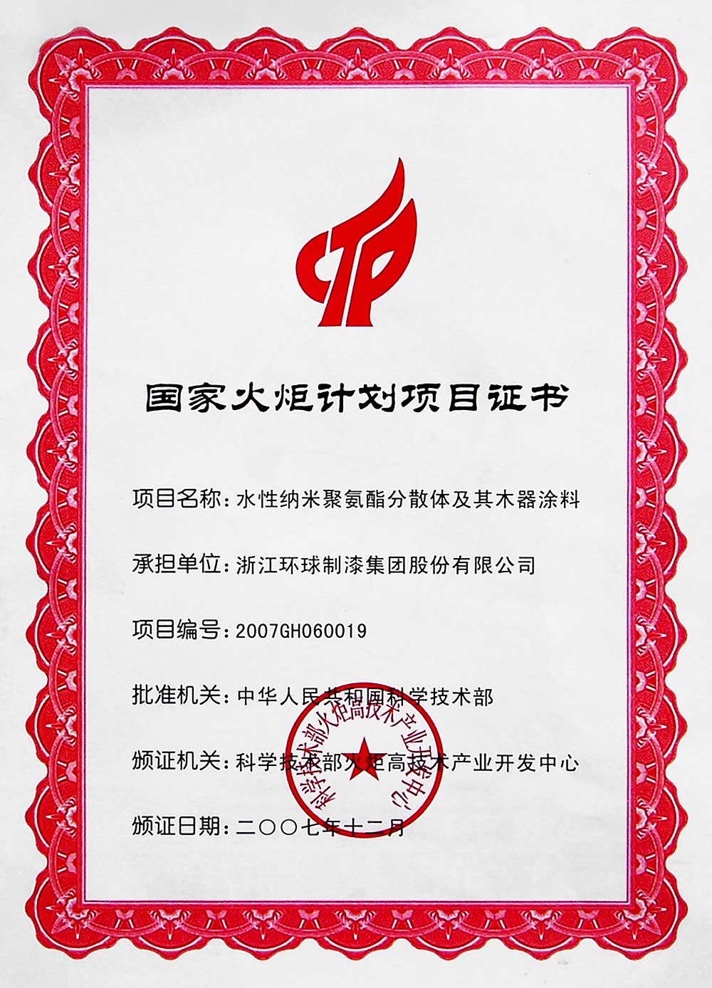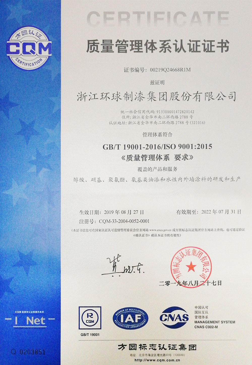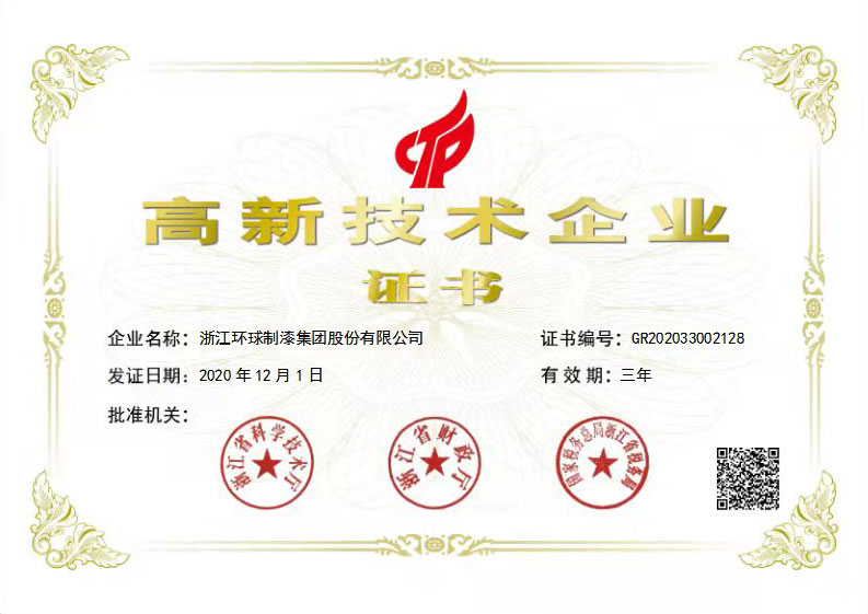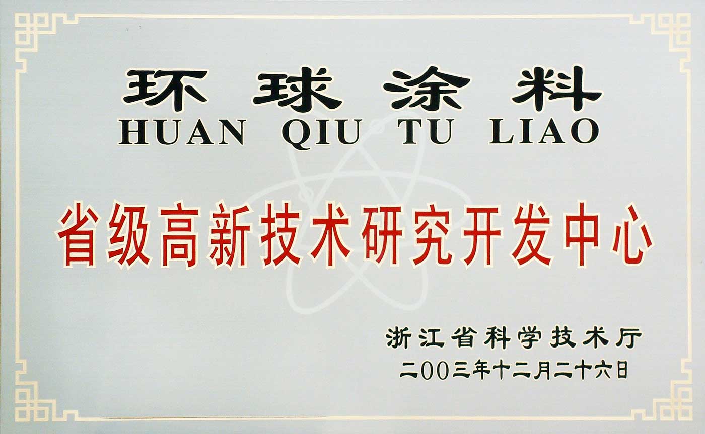 公司一貫堅(jiān)持以質(zhì)量求生存,以科技求發(fā)展,恪守“創(chuàng)精品、創(chuàng)優(yōu)質(zhì)、創(chuàng)名牌,為市場(chǎng)、為用戶、為明天”的質(zhì)量方針,精益求精,不斷超越,公司始終重視科技研發(fā),堅(jiān)持技術(shù)創(chuàng)新,擁有較強(qiáng)的科研開發(fā)能力,主導(dǎo)產(chǎn)品核心技術(shù)均為企業(yè)自主研發(fā)獲得,擁有專利17項(xiàng)。公司通過ISO9001質(zhì)量管理體系和ISO14001環(huán)境體系認(rèn)證,公司還榮獲“國家高新技術(shù)企業(yè)”、“中國工業(yè)漆企業(yè)10強(qiáng)”、“納稅信用等級(jí)AAA級(jí)企業(yè)”等稱號(hào),其產(chǎn)品榮獲“中國名優(yōu)建材產(chǎn)品及建設(shè)工程推薦產(chǎn)品”、國家裝飾、裝修產(chǎn)品“3C”認(rèn)證,“浙江名牌產(chǎn)品”、“浙江省著名商標(biāo)”等榮譽(yù)。
